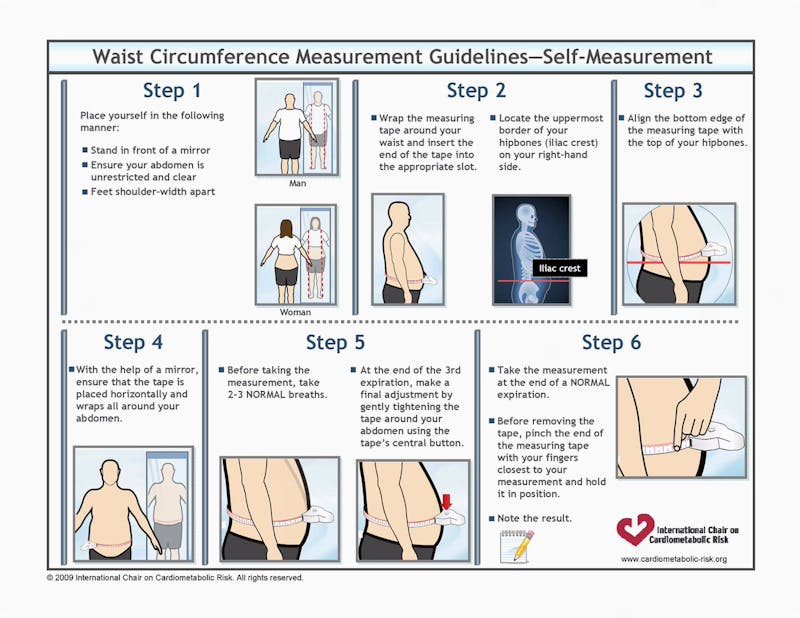 Bukomfång mäts stående, med måttbandet mitt emellan nedre revbensbågen och höftkammen.
