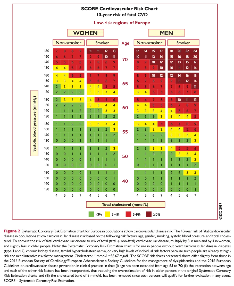 Patienter med ett SCORE på mellan 1 och 4% har per definition en måttlig risk att dö av kardiovaskulär händelse inom de närmsta 10 åren. Här ska i första hand livsstilsintervention genomföras. Om LDL-kolesterol ligger på över 2,5 mmol/l efter livsstilsinterventionen rekommenderas lipidsänkande farmakologisk behandling, i första hand statiner.